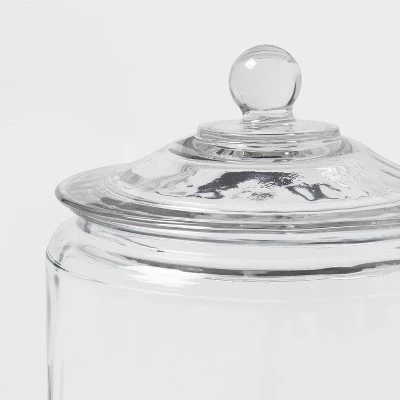Organize your kitchen with this Glass Jar and Lid from Threshold™. This glass jar makes a must-have pantry or kitchen essential. It features a classic design that fits well with any color scheme or kitchen decor, and a clear construction for easy identification of stored contents. The practical container makes an ideal choice for storing a variety of food items and dry ingredients that are used in your kitchen. It includes a secure lid that helps to keep the contents fresh, and a knob-style top handle that allows for easy open and use.