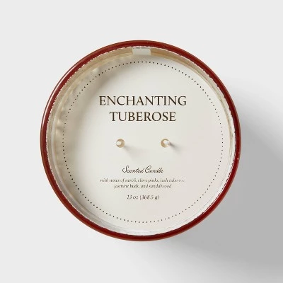 Immerse your space in the captivating allure of this 2-Wick 13oz Mercury Glass Candle Enchanting Tuberose Cream – Threshold™. Encased in a luxurious gold glass jar, this scented candle emanates a warm glow and a delightful blend of tuberose. Featuring 2 wicks, this Enchanting Tuberose candle offers 45 hours of enchanting burn time, creating a cozy ambience that transforms any moment.