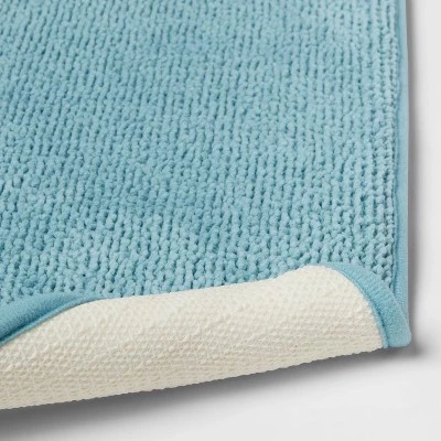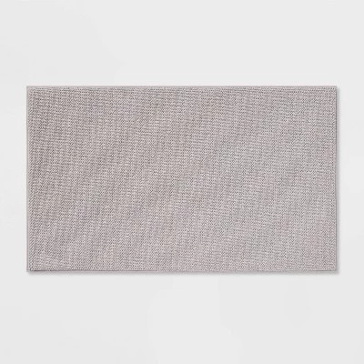 Step out of the shower and into luxury with this Fine Chenille Memory Foam Bath Rug from Threshold™. The memory foam lining brings you maximum comfort while you dry off and get ready to start your day, and it has a PVC backing to help keep it from slipping or sliding when you step on it. The knitted construction adds a fine finish to the whole. Toss it by the tub or place it in front of the vanity to enjoy its plush comfort as you go through your morning routine.