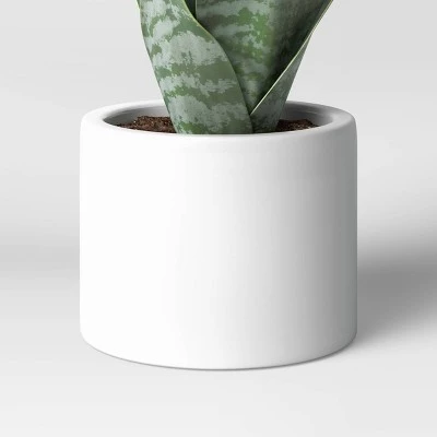 Add a touch of greenery and warmth to your decor with this Artificial Snake Plant in Pot from Threshold™. This faux potted plant features an artificial snake plant placed inside a white pot for a gorgeous, polished look. The artificial construction requires no maintenance and stays fresh at all times, while the white pot easily coordinates with any style of decor. Place it on your living room mantel or on an end table for a gorgeous aesthetic, or arrange it in a group with other faux-plants to create a stunning indoor oasis with no upkeep required.