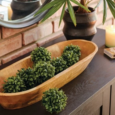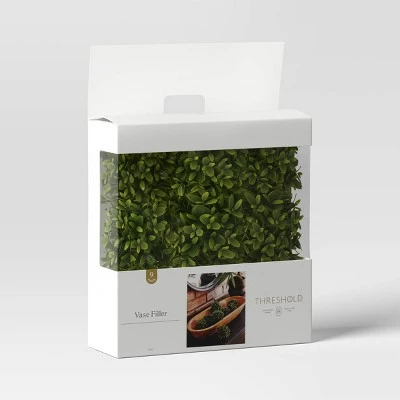 Add lush greenery to any tabletop with this Artificial Boxwood Fillers from Threshold™. This box includes nine pieces of dark green boxwood fillers that blends well with a variety of decor. The artificial construction requires no maintenance or care. You can place them in empty fruit bowls, glass vases or centerpieces to create a nice focal point on your dining or coffee table.