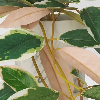 Decorate any space in your home with natural charm with this Artificial Plant in Marble Ceramic Pot from Threshold™. This arrangement showcases a faux hoya plant hanging out from inside a modern stoneware container to add a lively vibe to your home. Display it on your mantle, entryway, foyer table, living room or anywhere else, either alone or with other real or faux plants.