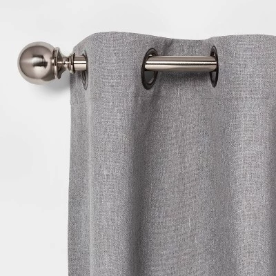 Easily bring effortless style to any of the windows in your home with the help of this sleek, stylish and functional Ball Curtain Rod from Threshold™. Made with sturdy metal for durability and stability, this curtain rod features large ball accents with curved detailing on the ends for a subtle touch of style and texture. With a range of sizes and finishes to choose from to meet your decor needs perfectly, this metal ball curtain rod is an easy way to give any room a style makeover.