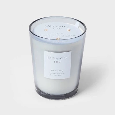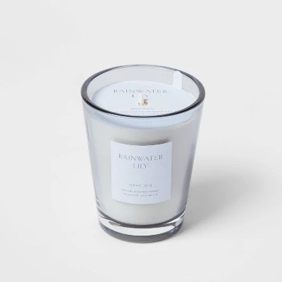 Elevate your space with this Colored Vase Glass with Dustcover Rainwater Lily Candle Gray – Threshold™. It features rainwater lily with notes of succulent peach to infuse your surroundings with a soothing scent. The glass vase adds a touch of elegance to any room. Whether you’re unwinding after a long day or setting the mood for a special occasion, this Colored Vase Glass with Dustcover Rainwater Lily Candle Gray – Threshold™ creates a relaxing ambiance.