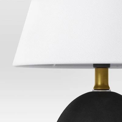 Update your collection of lamps with this Faux Wood Mini Table Lamp from Threshold™. This mini table lamp features a black faux wood base that’s paired with a white tapered drum shade for a modern contrasting look. The one-way light setting with a socket push-through switch allows for easy operation. Place it on any side table next to your sofa, on the console table or on a nightstand in the bedroom for an inviting look.