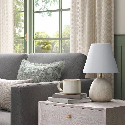 Light up any room in your living space with this Faux Wood Mini Table Lamp from Threshold™. This mini table lamp features an off-white faux wood base that’s paired with a white tapered drum shade for a modern look. The one-way light setting with a socket push-through switch allows for easy operation. Place it on any side table next to your sofa, on the console table or on a nightstand in the bedroom for an inviting look.