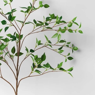 Keep your decor green and welcoming with this Green Leaf Branch from Threshold™. This branch is decorated with faux green banyan leaves for a realistic, natural look. The long stem blends easily with a variety of decor styles, and it can be displayed alone or with other real or faux stems in jars or vases.