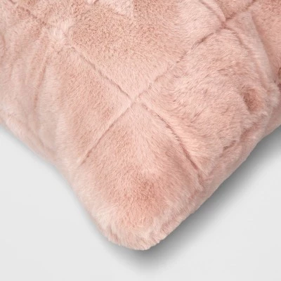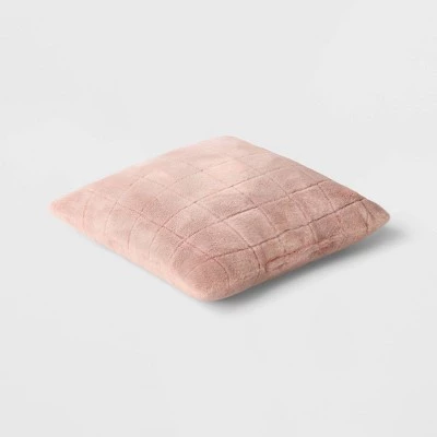 Add a touch of plush warmth to your seating or bedding by incorporating this Oversized Pieced Faux-Fur Square Throw Pillow from Threshold™. This light pink pillow is designed with a grid pattern for a chic look. Featuring a faux-fur exterior and padded interior, this 24-inch throw pillow adds plenty of comfort and style to your space.