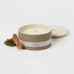 3-Wick 14oz Matte Textured Ceramic Wooden Wick Candle Green/Vetiver and Oakmoss – Threshold™