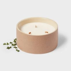 3 Wick 14oz Matte Textured Ceramic Wooden Wick Candle Brown / White Sage & Thyme – Threshold™