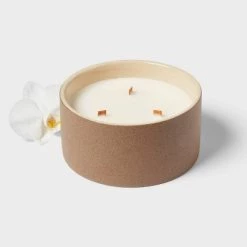 3 Wick 14oz Matte Textured Ceramic Wooden Wick Candle Brown / Coconut Water and Orchid – Threshold™