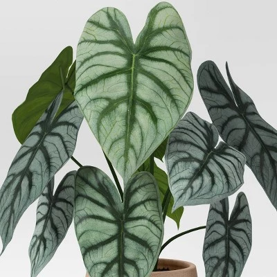 Give your decor a welcoming green look with this Small Artificial Dasheen Leaf Plant from Threshold™. This small botanical arrangement showcases a realistic-looking dasheen leaf plant to bring a touch of nature to your space. The artificial construction requires no maintenance, while the speckled ceramic pot in neutral hue pairs well with most decor and allows for easy display. Just place it on the mantel, console or sideboard along with other decor anywhere indoors.