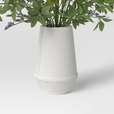 Add maintenance-free greenery to any space with this Thistle and Lavender Arrangement from Threshold™. This decorative arrangement showcases faux thistle and lavender flowers with green leaves on branches tightly grouped together and potted inside a ceramic container. Place it on your entryway console or dining table alone or with other real or faux plants for lovely display.