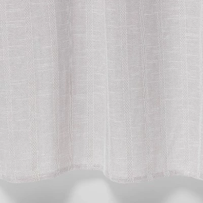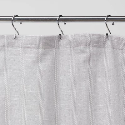 Upgrade your master bath or guest bathroom in classic style with this Dyed Striped Shower Curtain from Threshold™. Showcasing a vertical striped pattern against a solid gray, this gray dyed shower curtain adds a timeless character to your space while bringing instant style to any bathroom decor. Made from 100% cotton fabric, this cotton shower curtain comes with a buttonhole top design that helps provide easy hanging, and it’s machine-washable for simple care and maintenance. Just pair it with coordinating bath rugs and matching bath towels to bring a cohesive vibe to your bathroom.