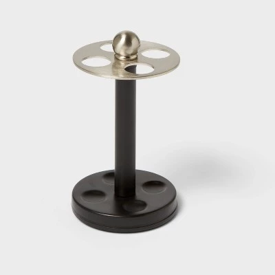 Upgrade your bathroom decor with the chic style of the Metal Toothbrush Holder from Threshold™. Crafted from steel, this round toothbrush holder features a black base and a silver-finish top with four slots to hold your toothbrushes upright and keep your bathroom counter organized and free of clutter. Best of all, the simple, sleek style of this toothbrush holder will pair effortlessly with any existing bathroom decor.